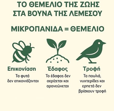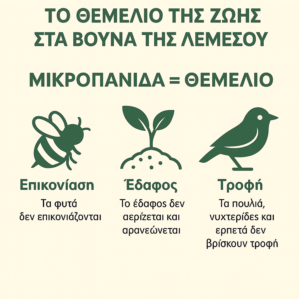Η μικροπανίδα είναι ο «αόρατος στρατός» που τρέφει την Κύπρο. Από αυτήν εξαρτώνται όλα τα είδη που αγαπάμε και θέλουμε να σώσουμε. Αν δεν αποκατασταθεί, η Ορεινή Λεμεσός δεν θα γίνει ποτέ ξανά πράσινη· θα μείνει μια σιωπηλή ερημιά.