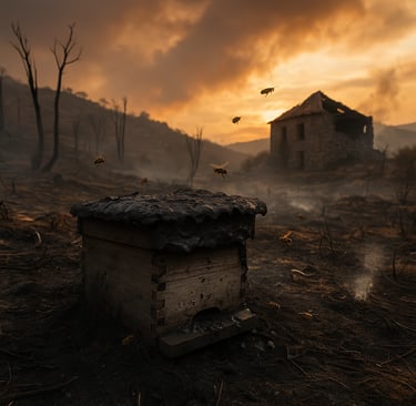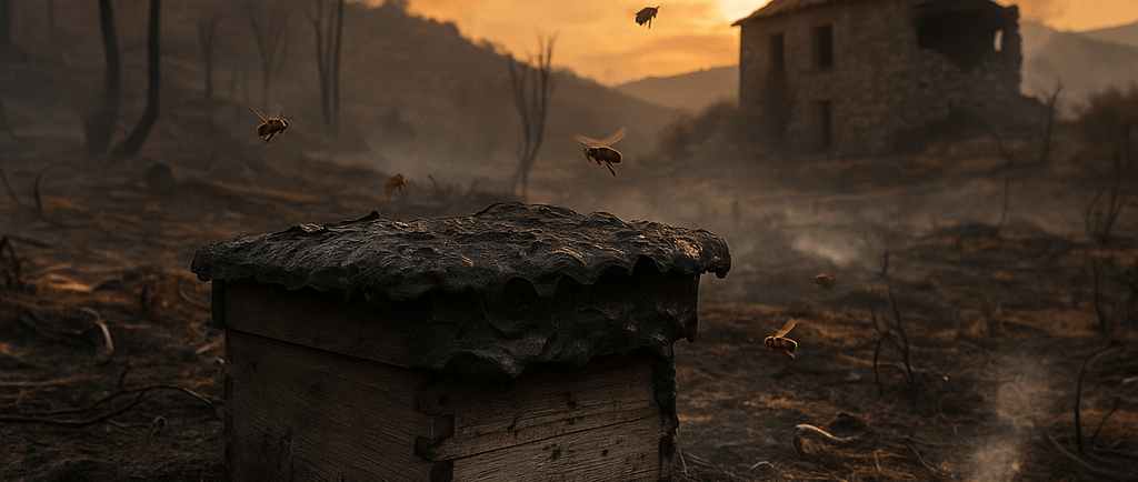 The July 2025 fires in the Limassol Mountains did not just burn down trees and houses. They hit beekeeping hard, one of the fundamental pillars of the ecosystem and the local economy.